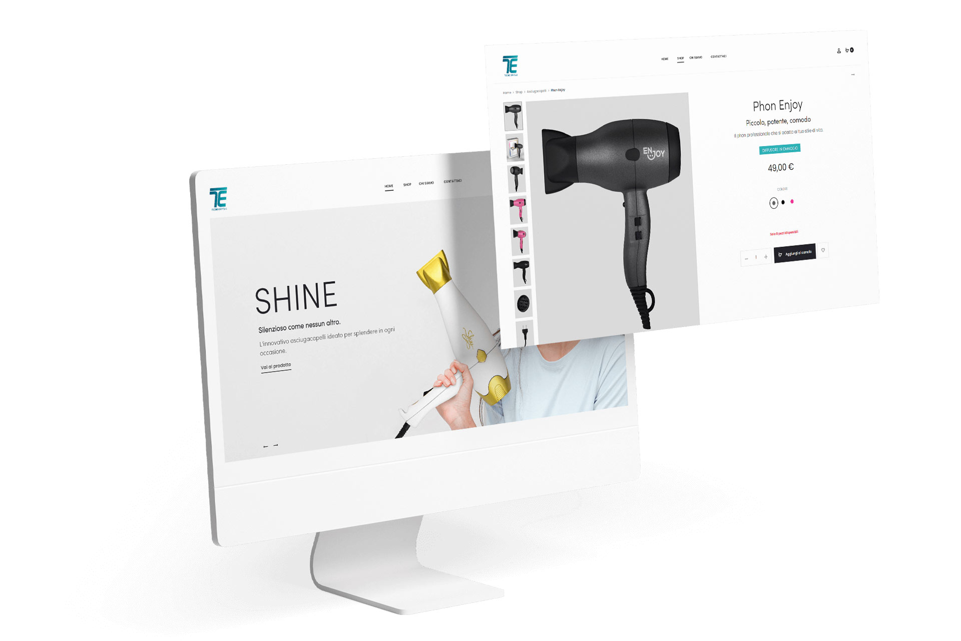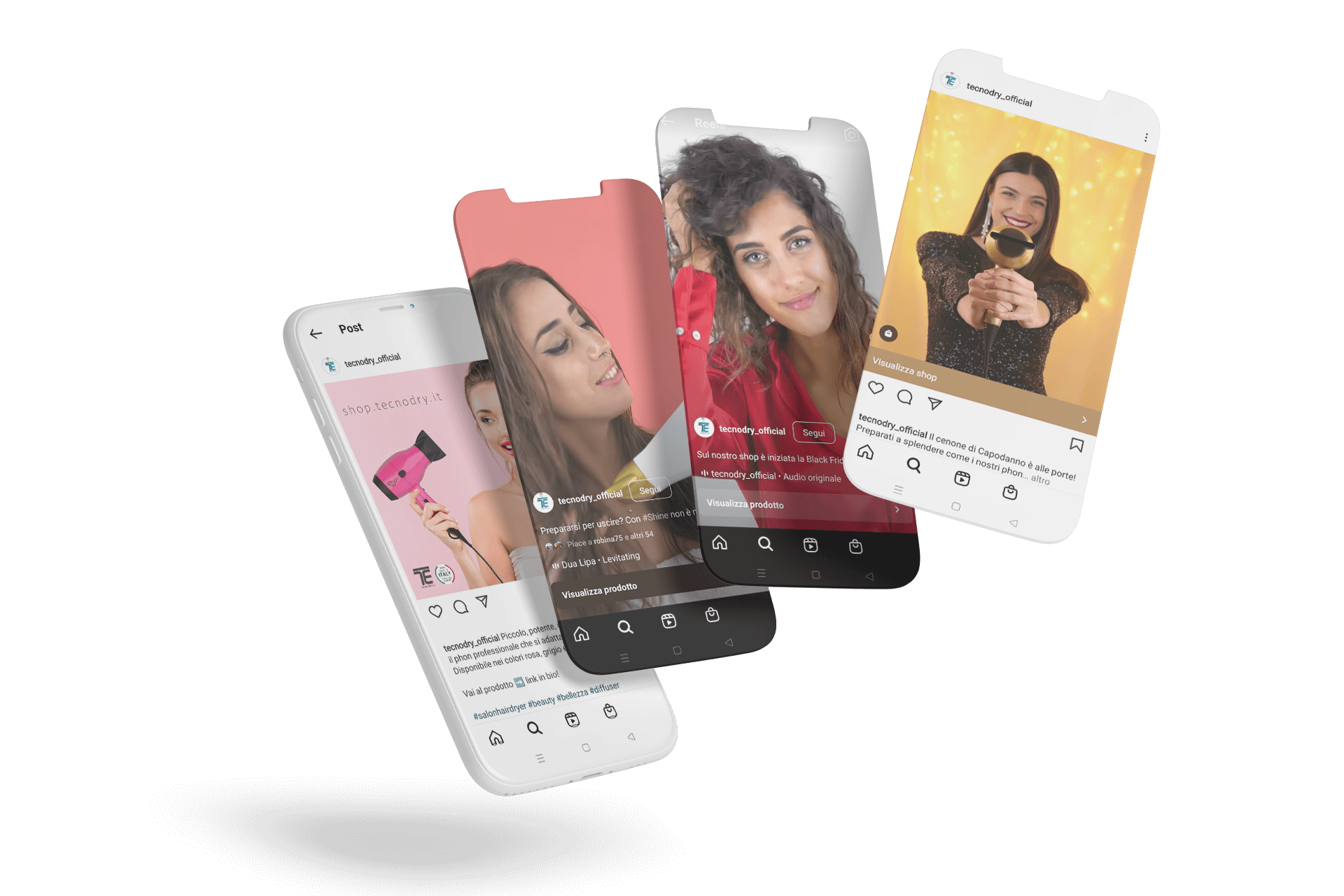 In secondo luogo, abbiamo risposto alla volontà del cliente di aprirsi al mercato B2C proponendo l’apertura di uno shop con i phon a marchio Tecno Dry per i quali abbiamo curato anche naming, loghi e packaging. Nella strategia di lancio e promozione abbiamo predisposto una massiccia attività di Social Media Ads e Google Ads.